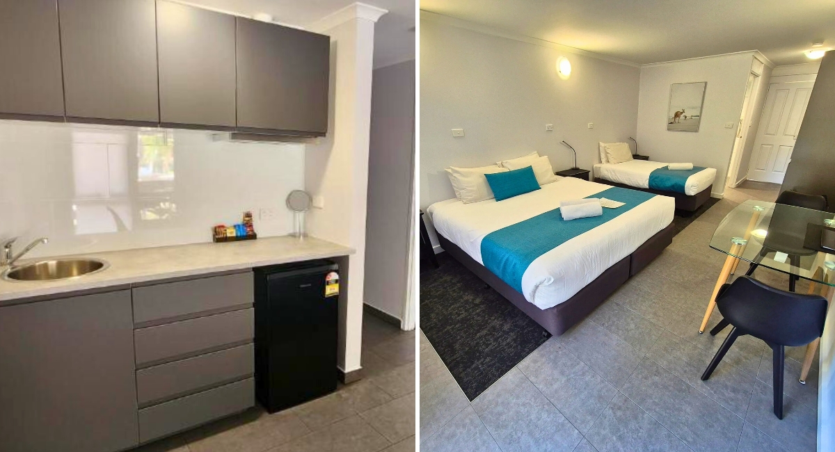Alongside its fresh interiors, the motel also offers practical and thoughtful amenities, like solar-heated pool access, a guest BBQ area, and a dual EV charger available for guests and the public — a rare find in the region.